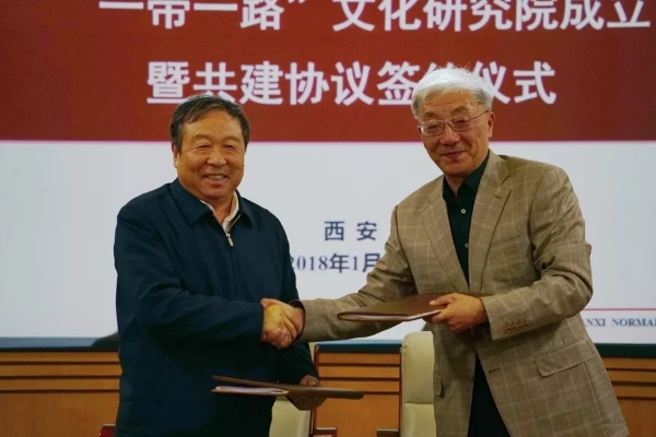 1月5日上午,陜西師范大學(xué)、中國社會科學(xué)院大學(xué)“一帶一路”文化研究院成立暨共建協(xié)議簽約儀式在陜西師范大學(xué)長安校區(qū)校務(wù)樓215 會議室舉行。中國社會科學(xué)院大學(xué)臨時黨委書記、常務(wù)副校長張政文,陜西師范大學(xué)黨委書記甘暉,校長、黨委副書記程光旭,副校長游旭群出席簽約儀式。