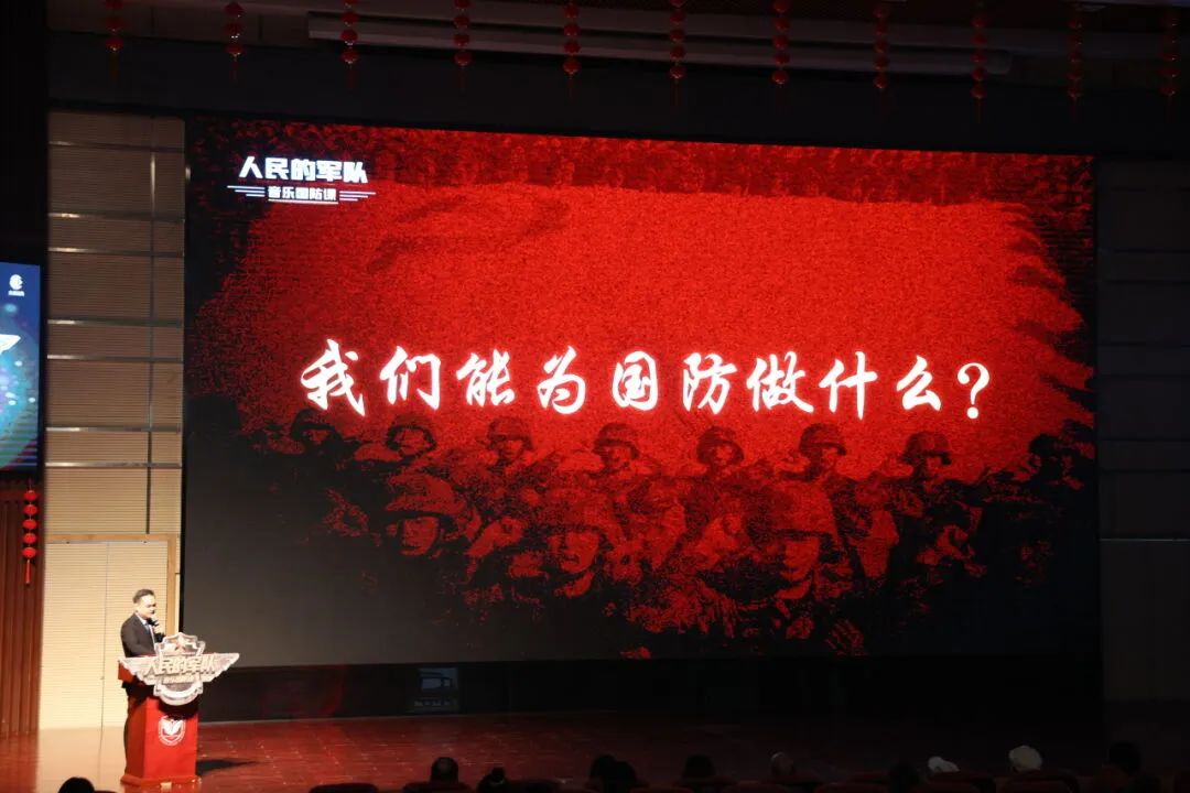 活動由北京新思路智庫董事長鄧昭明主講。他把現(xiàn)場講述和音樂、影視、動畫、詩詞等藝術形式結合起來,通過引人入勝的國防故事、種類多樣的影像資料、變化豐富的音樂效果、貫穿其中的互動環(huán)節(jié)構建起以學生為中心的維度廣、立體化的“沉浸式”課堂。在精心編排設計下,課程以一個個鮮活、感人的英雄事跡、模范故事,在音樂、畫面、場景等各類元素的加成烘托下產生了強烈的藝術感染力,許多同學“沉浸”其中,潸然淚下。