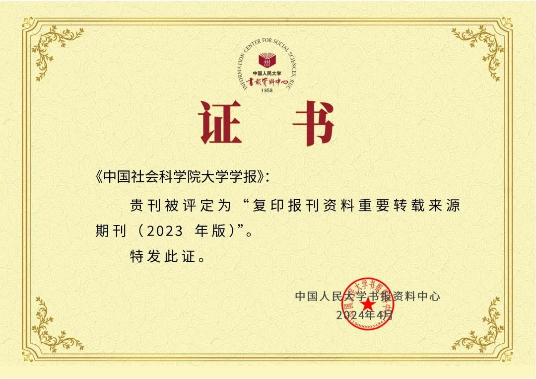 2024年4月25日,中國人民大學書報資料中心正式發布“復印報刊資料重要轉載來源期刊(2023年版)”,《中國社會科學院大學學報》入選。