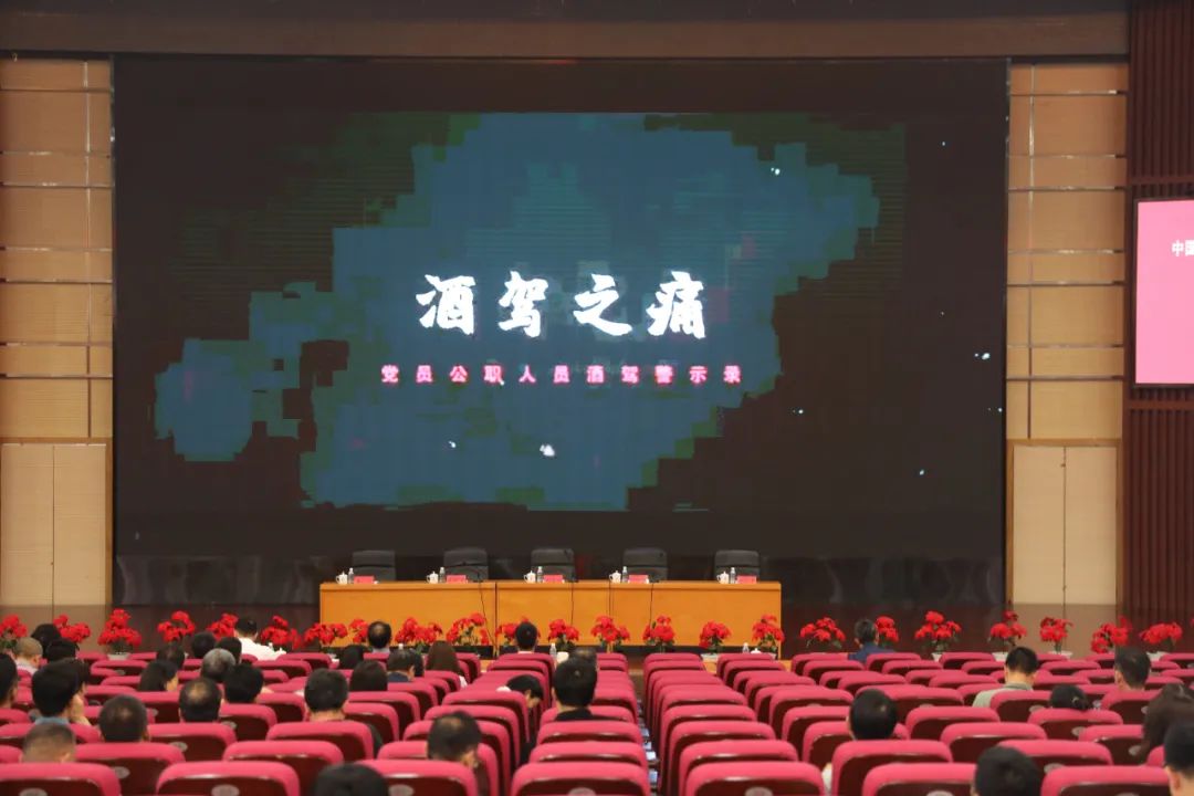 會上,全體參會人員觀看酒駕醉駕警示教育片。
