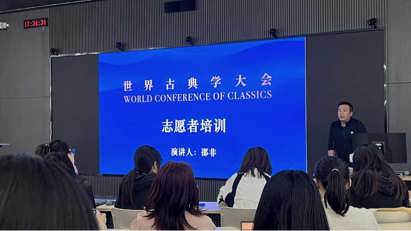 10月27日,主辦方入校開展了志愿者專項培訓會,圍繞“大會概況”“志愿者日程”“志愿者保障”三個板塊展開崗前培訓,為志愿者上崗工作做好了充足的跨文化知識與相關溝通和服務技能儲備。
