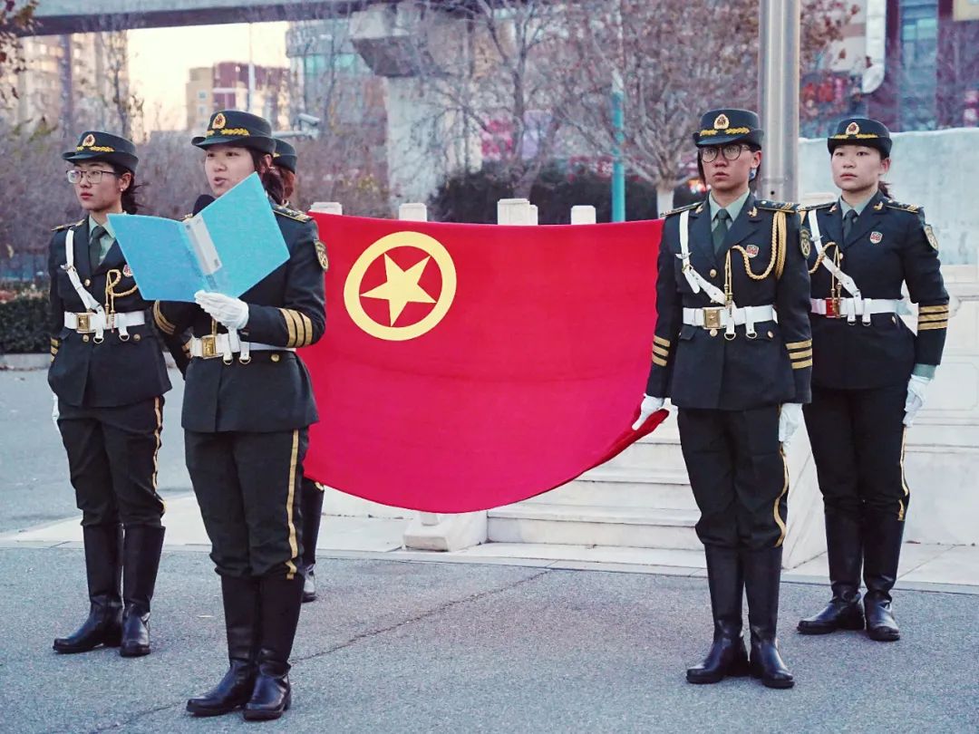 中國社會科學院大學國旗護衛隊出團旗。