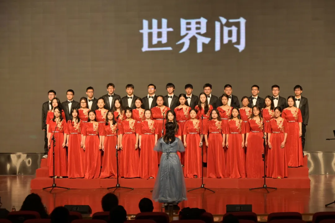 外國語學院和文學院聯合組成的“文名中外”合唱隊演唱的曲目為《夜空中最亮的星》和《向陽而生》。