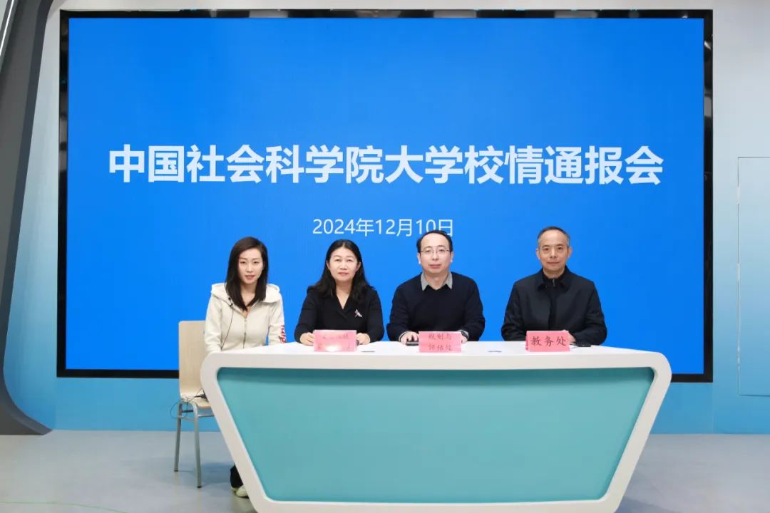 12月10日,中國社會科學院大學2024年秋季學期第四場(總第22場)校情通報會在良鄉(xiāng)校區(qū)融媒體實驗室舉行。規(guī)劃與評估處、教務處、望京校區(qū)管理辦公室負責人對近期工作進行了通報。各學院黨委(總支)書記、學生會研究生會權(quán)益部代表和部分師生參加了通報會。