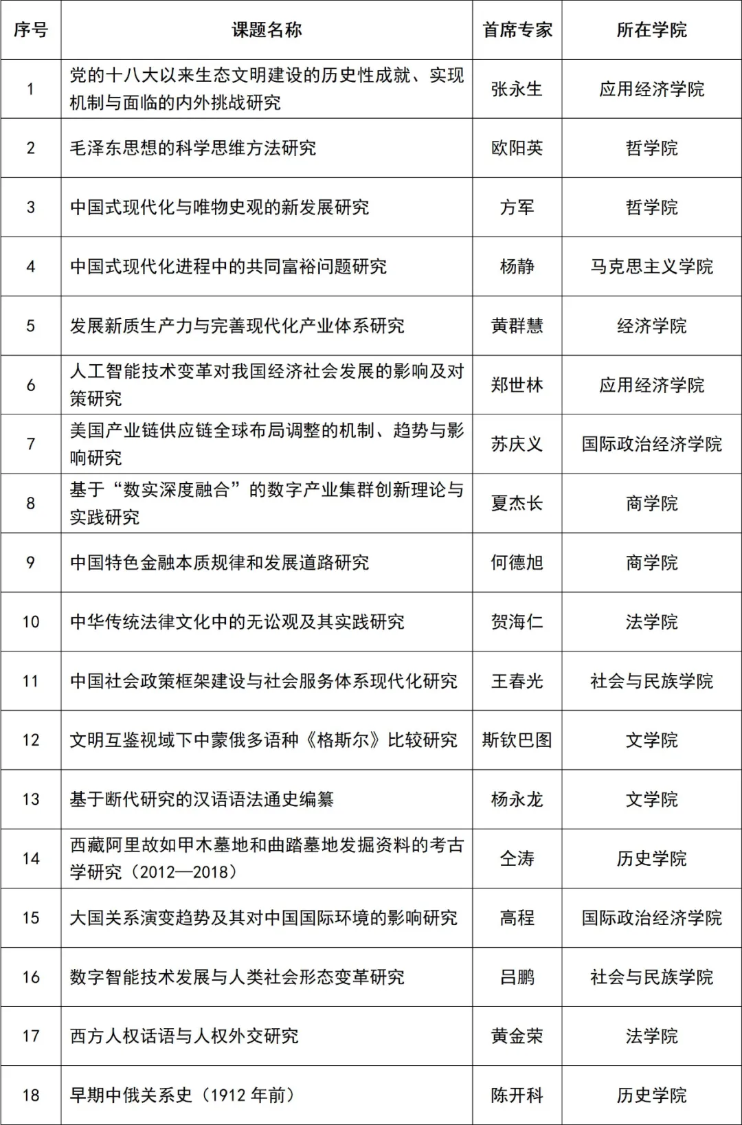 近日,全國哲學(xué)社會科學(xué)工作辦公室正式公布了《2024年國家社科基金重大項目立項名單》《2024年習(xí)近平文化思想研究中心重大課題立項名單》。其中,我校教師獲批18項“2024年國家社科基金重大項目”;獲批3項“2024年習(xí)近平文化思想研究中心重大課題”。